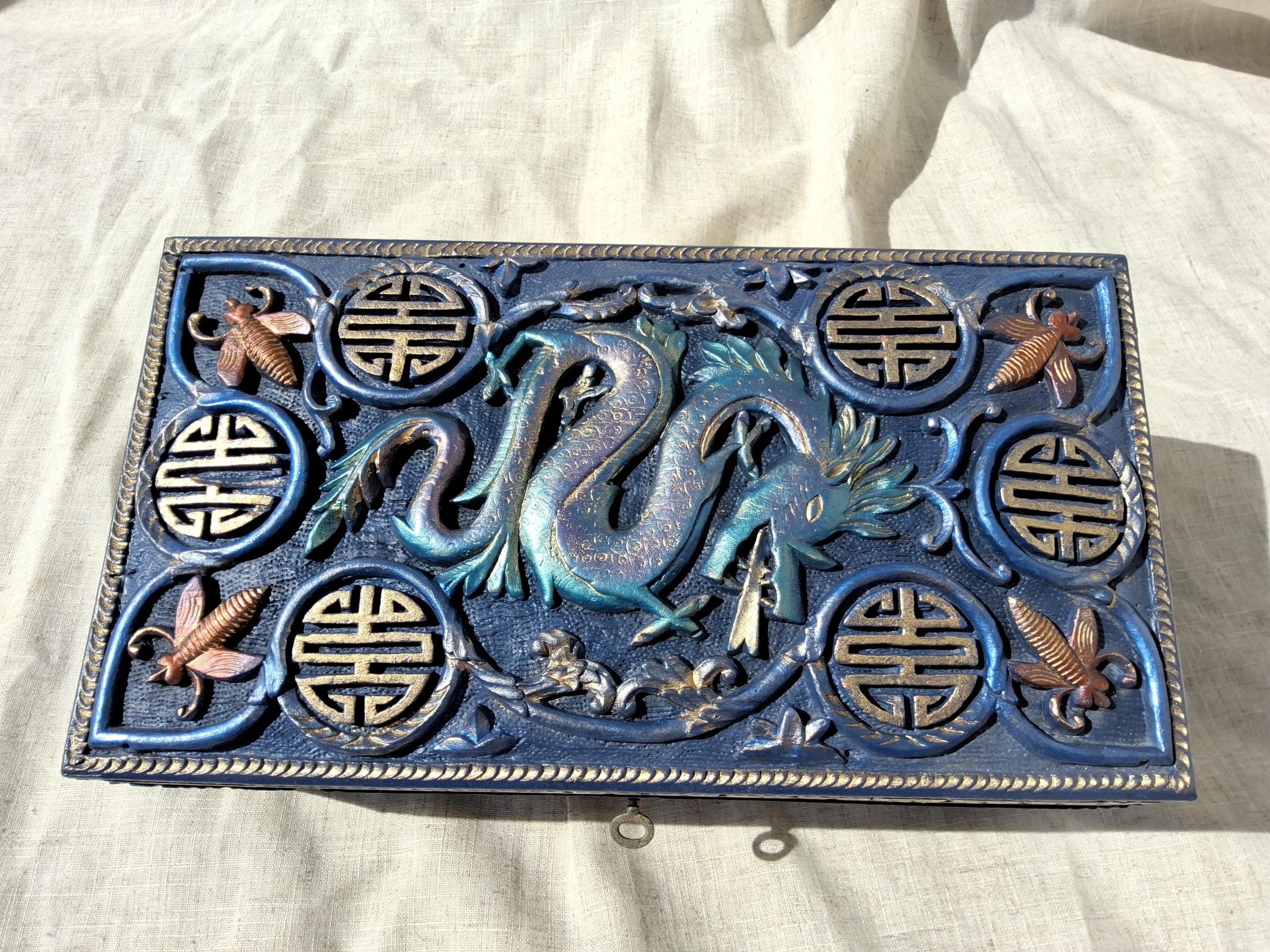 Antique Victorian oriental dragon carved high relief jewelry box, circa 1870-1890 VERY rare box!