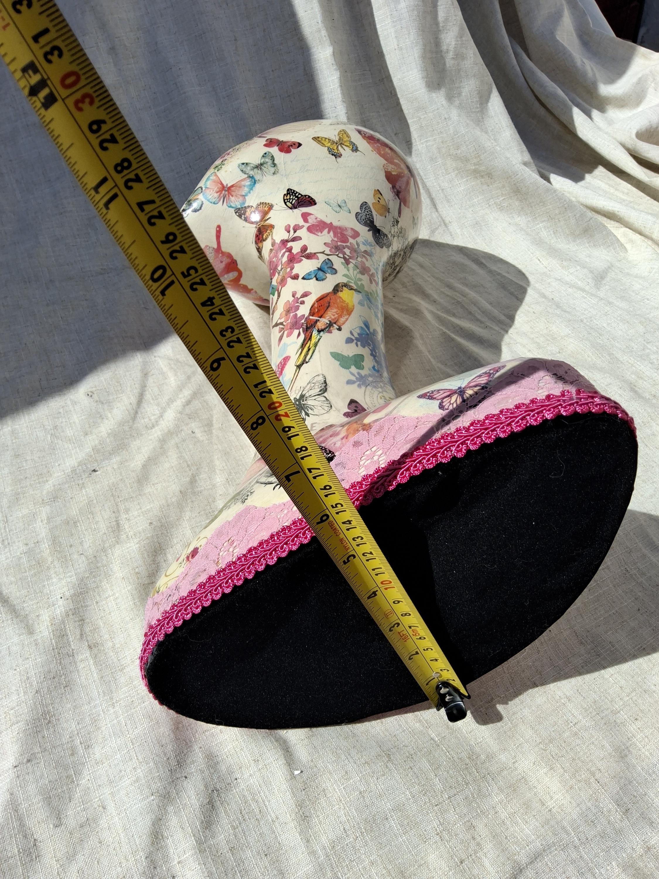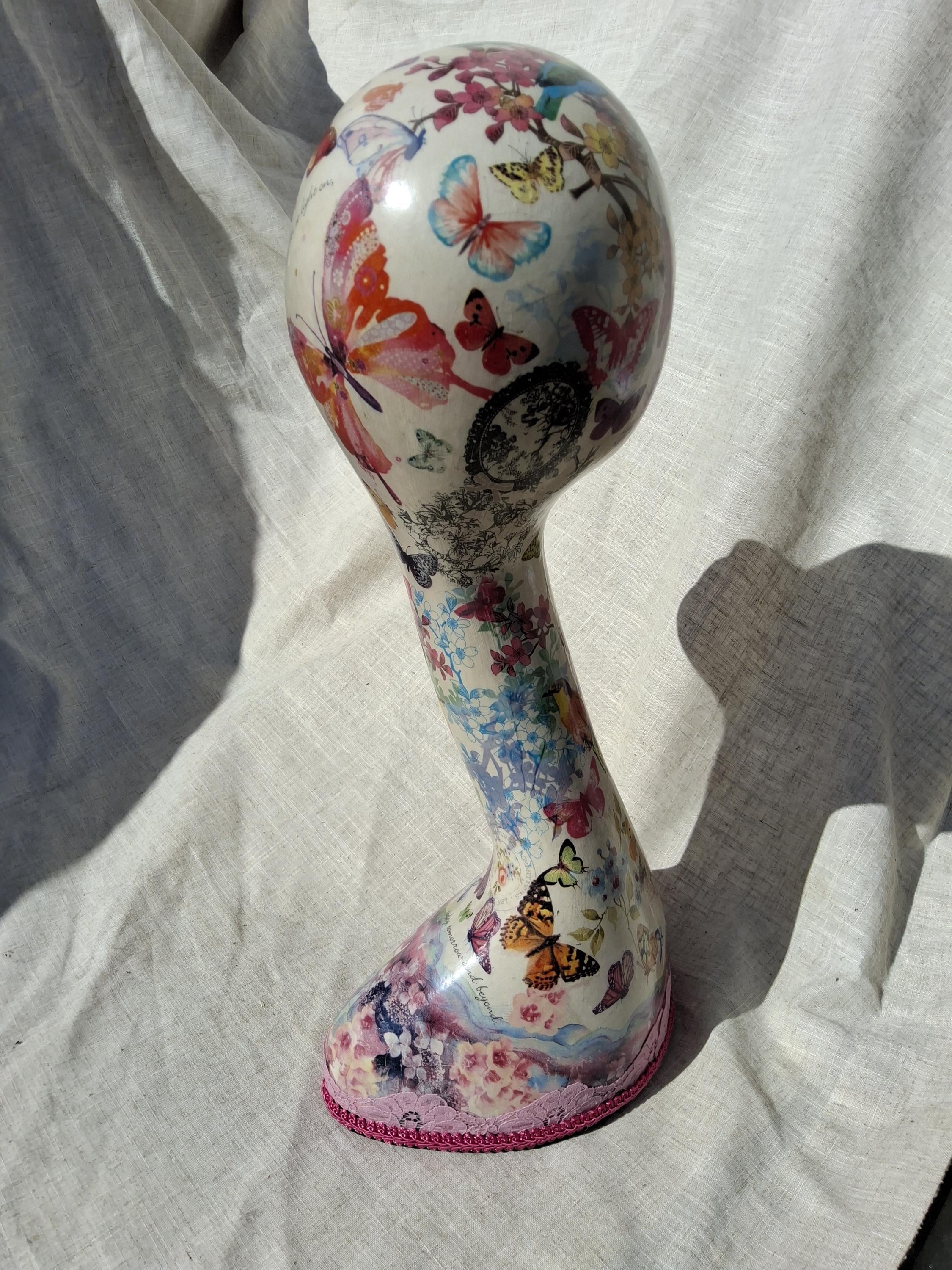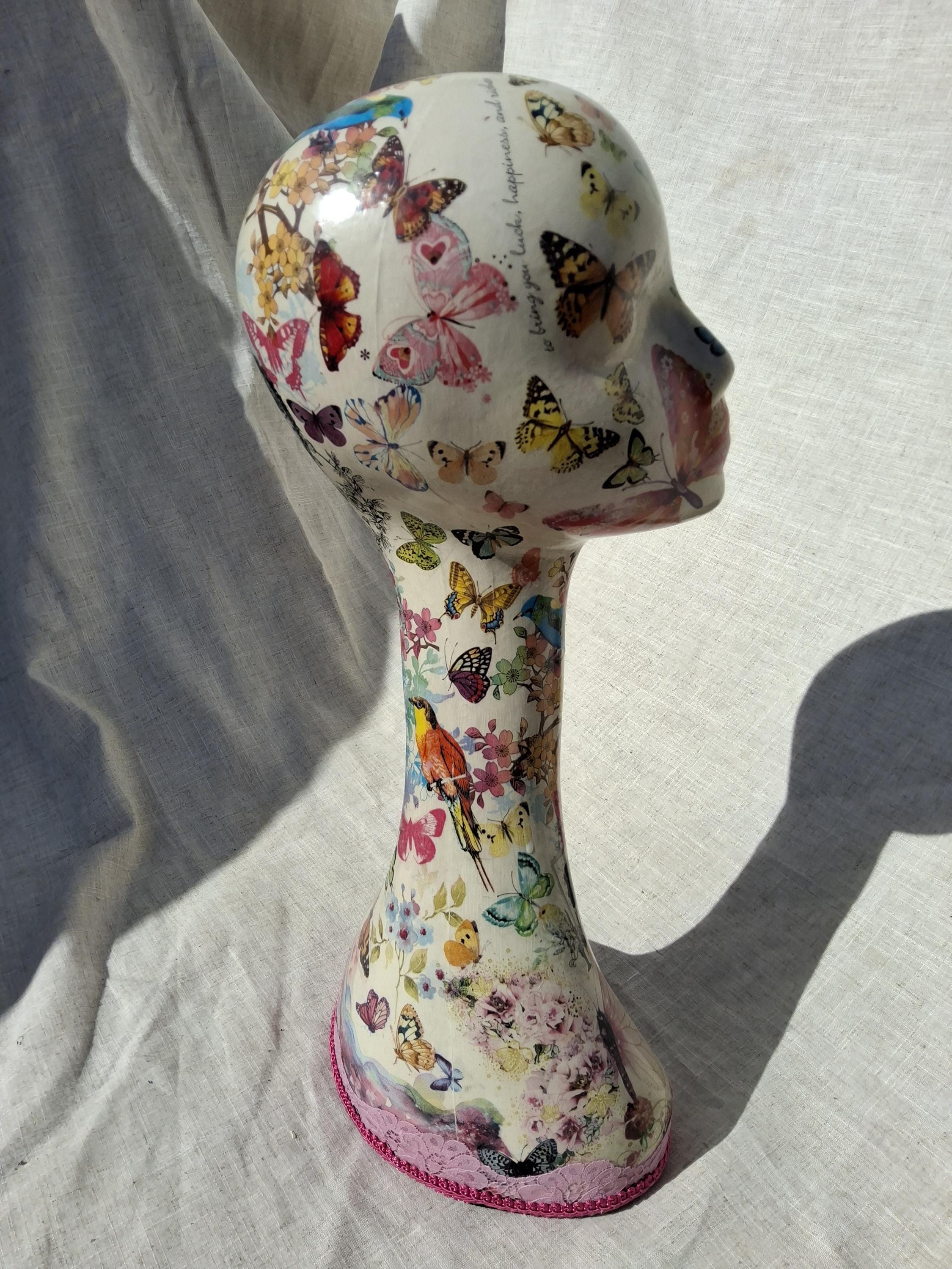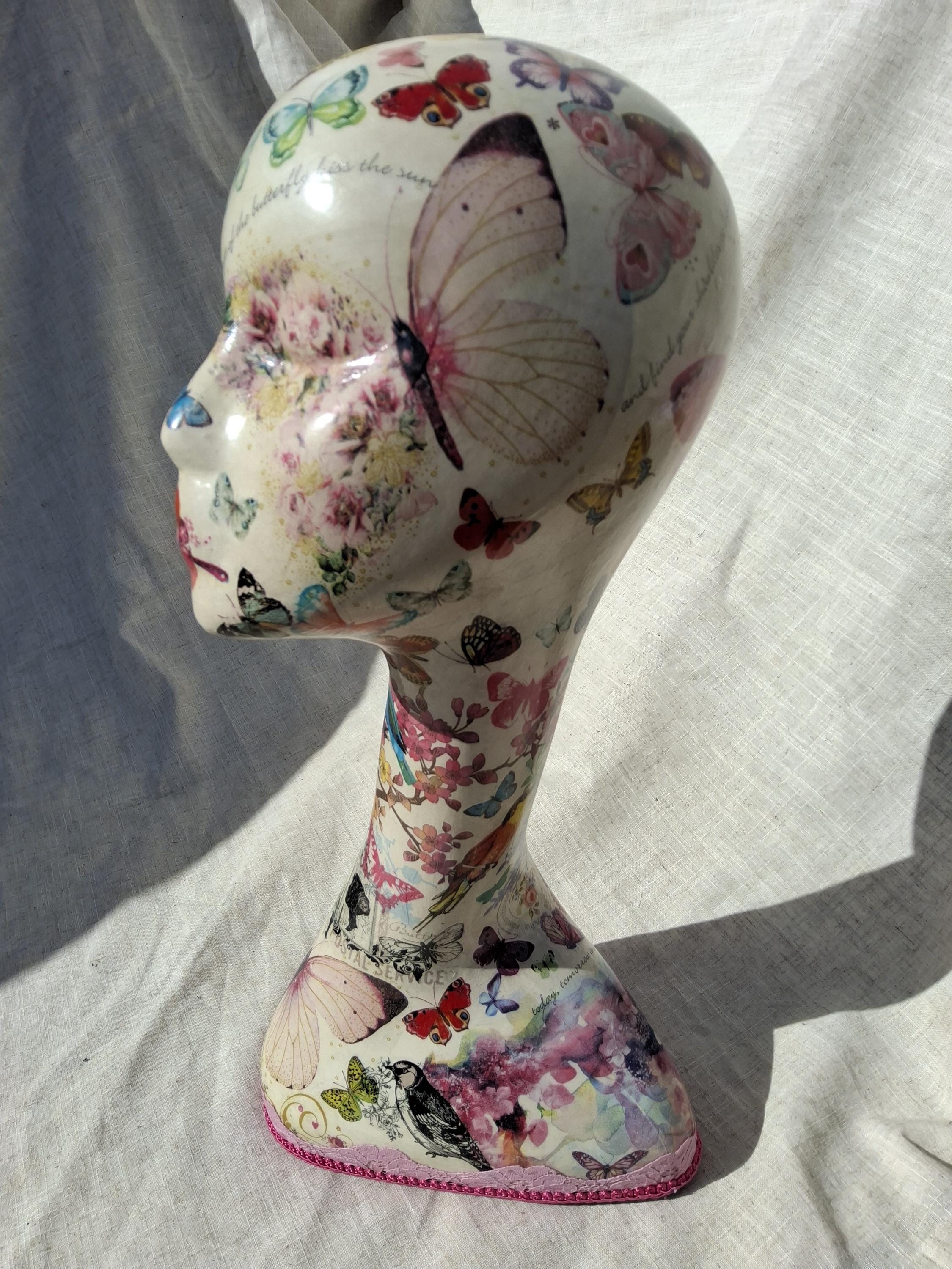 Swan neck Hand decorated mannequin head.female mannequin head.decoupage butterfly,mannequin.Shabby chic hat stand.wig stand.hairband holder.
