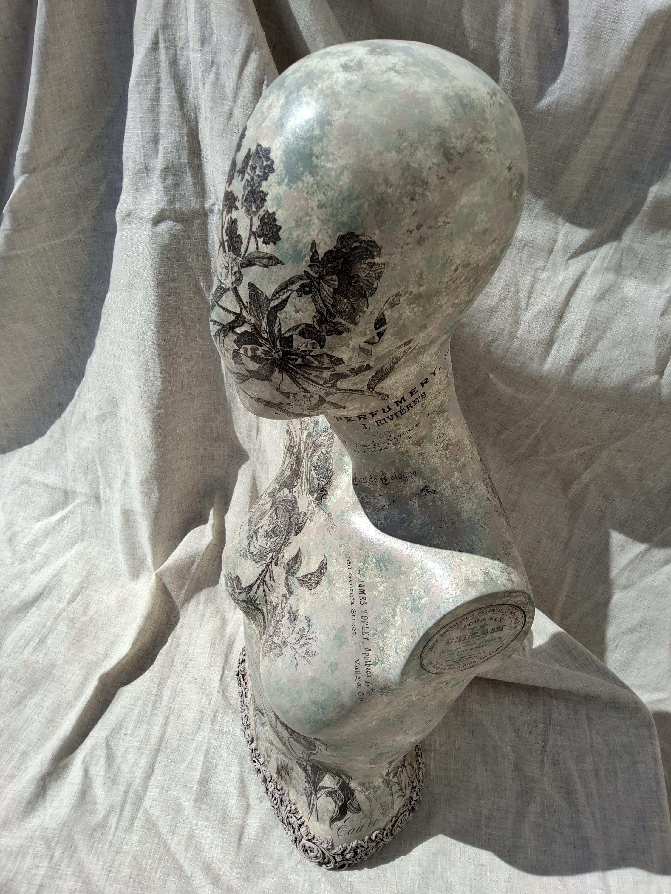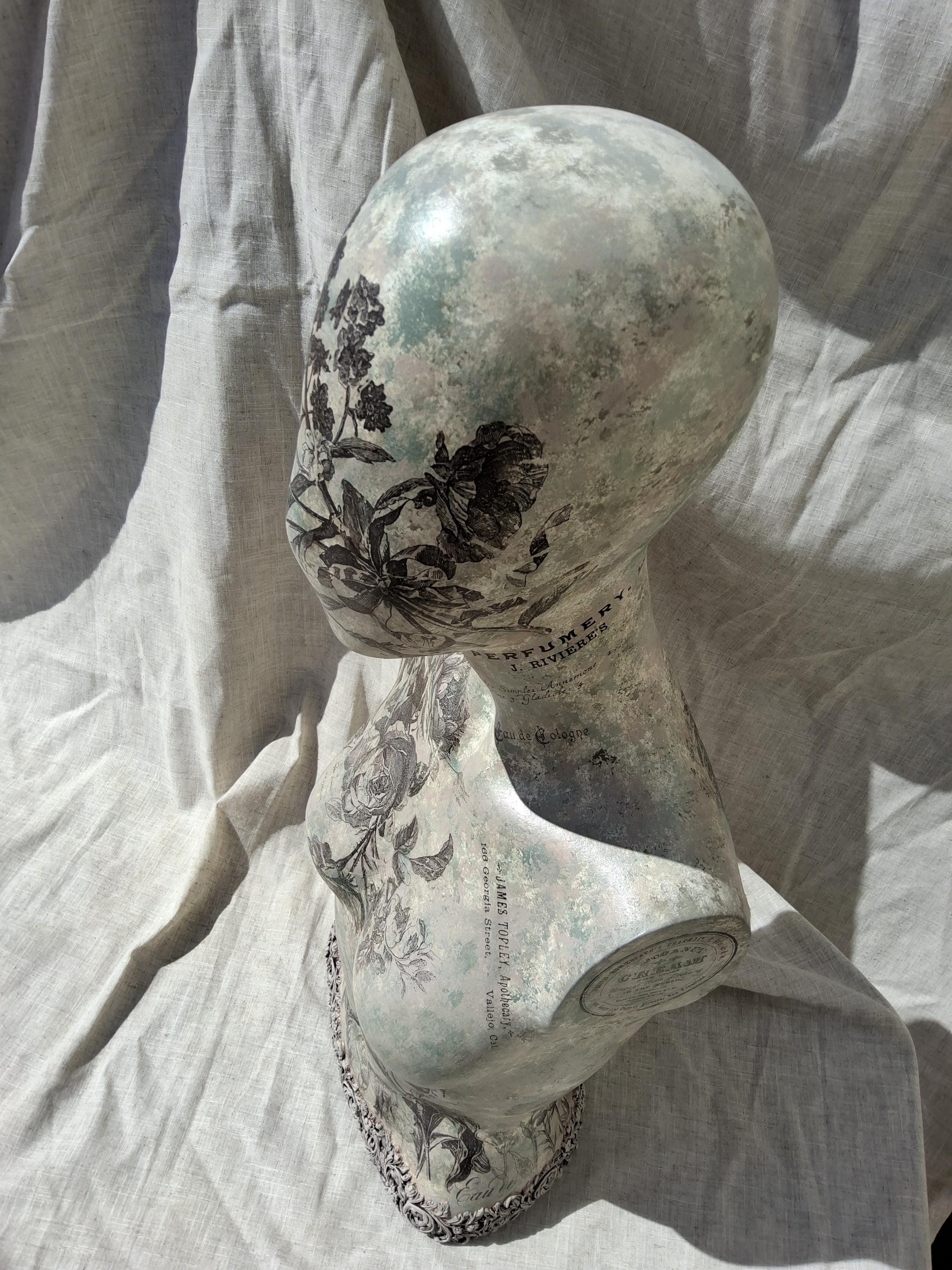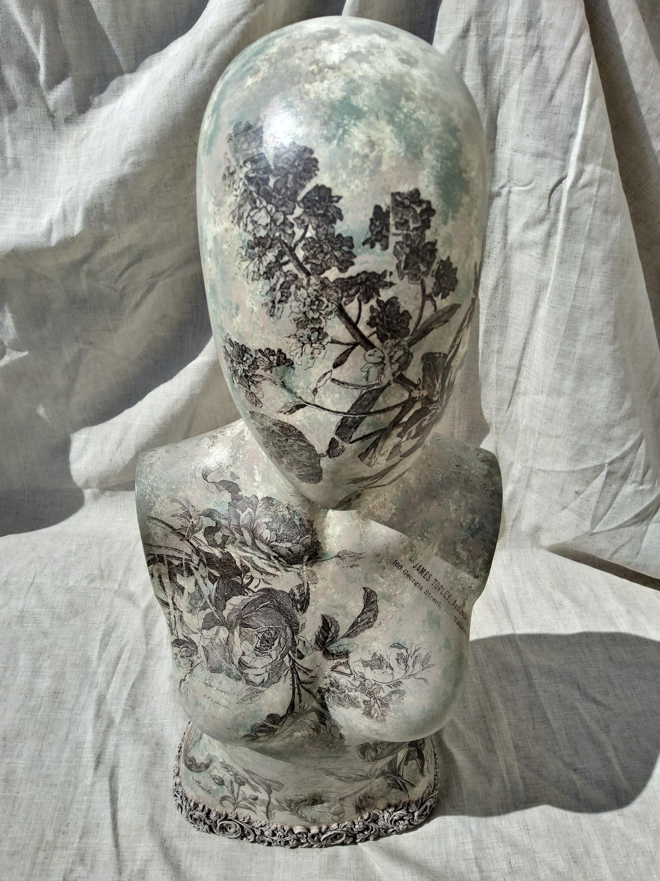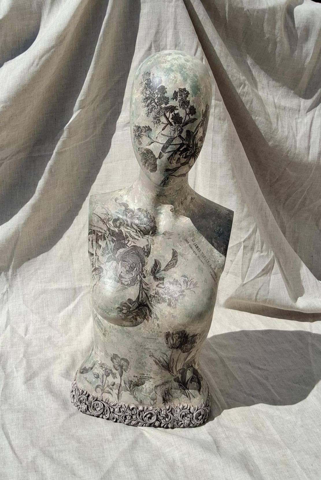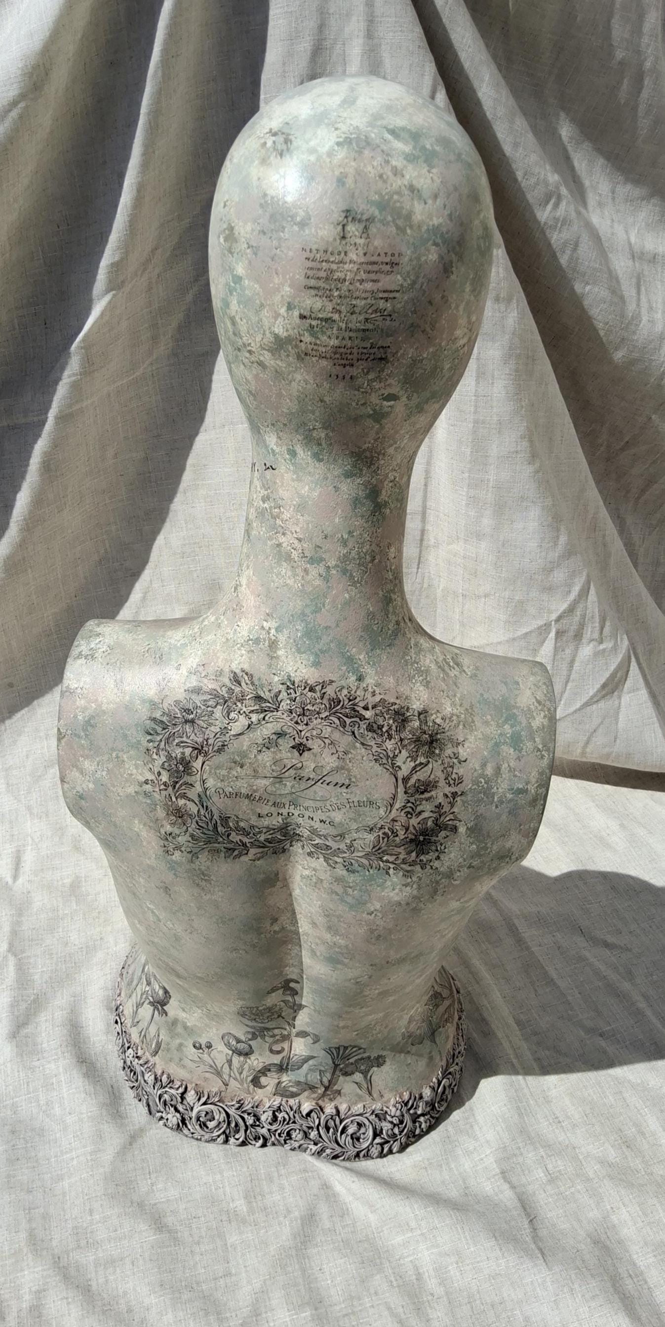 Bring an artistic touch to your space with this stunning decoupage mannequin, handcrafted with intricate decoupage. Each mannequin is uniquely designed, making it a one-of-a-kind decorative statement. Perfect for boutiques, or home décor enthusiasts looking for an elegant conversation starter.