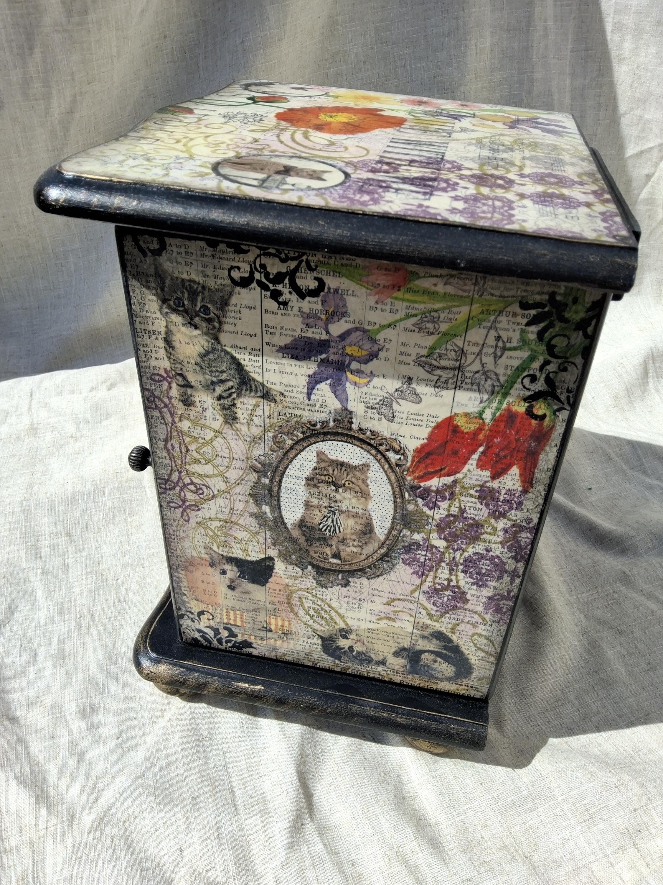 Gorgeous unique vintage Thomas Pacconi jewellery box with decoupaged kittens/cats.